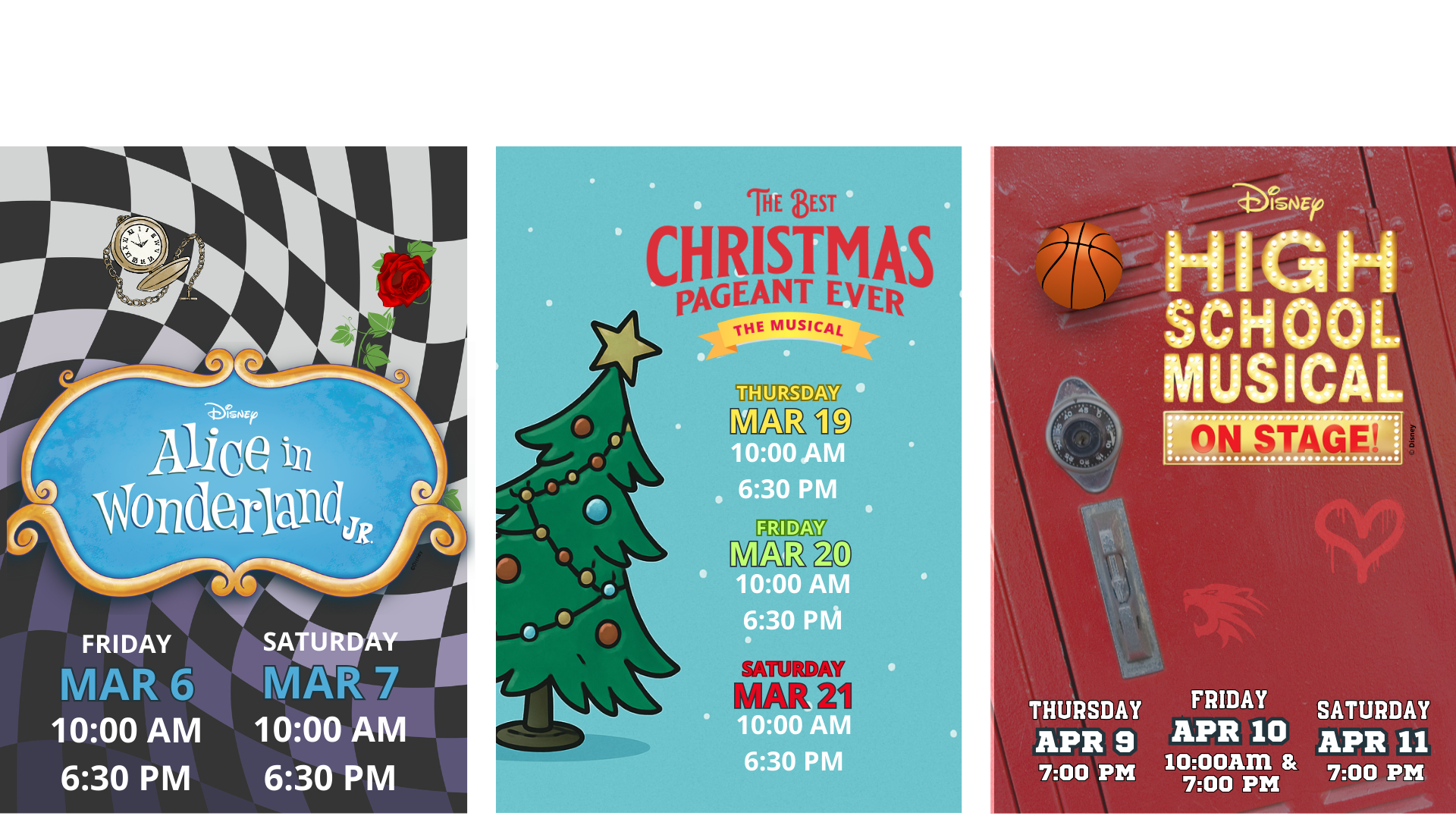Age-appropriate shows are thoughtfully chosen each year so students can grow with confidence and creativity. Along the way, they learn what it takes to be part of a production, build healthy habits like time management and discipline, and discover the joy of working together on stage.